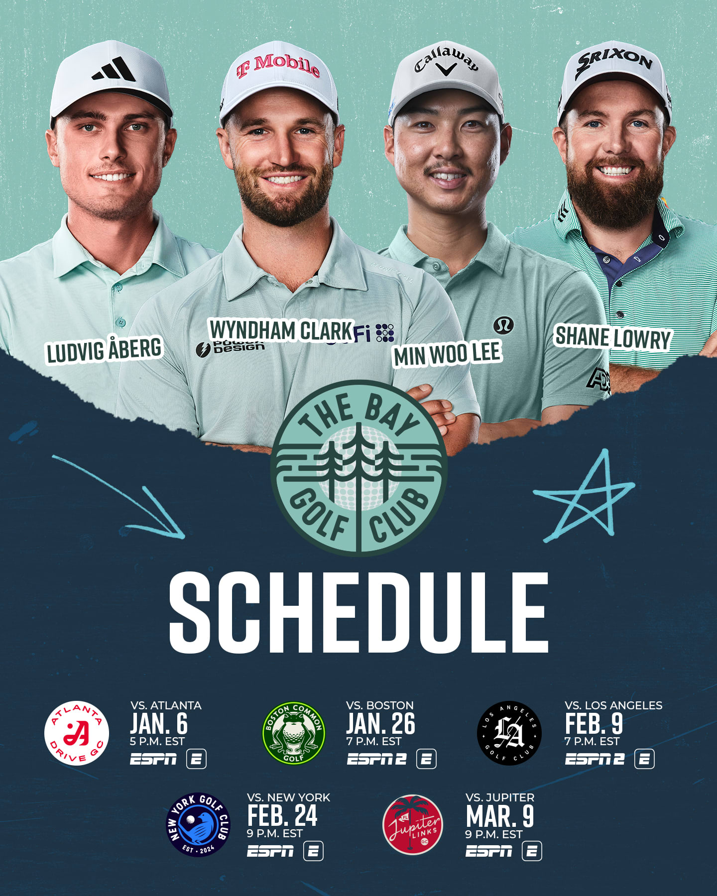The Bay will also compete in the final match of the upcoming regular season March 3 against Jupiter Links Golf Club, with Jupiter looking to bounce back after finishing fifth in the SoFi Cup Standings to miss the playoffs a year ago.