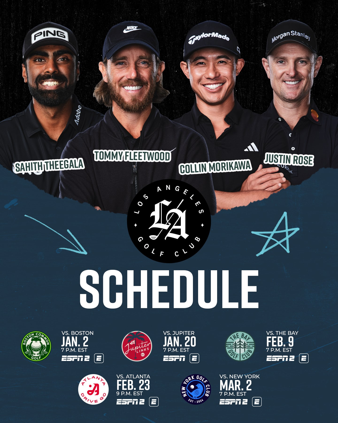 Los Angeles officially tees off with a primetime matchup against Boston Common Golf at 7 p.m. ET, Jan. 2 at SoFi Center. LAGC’s opener will air live on ESPN2 as TGL rings in the New Year with the first match of 2026.