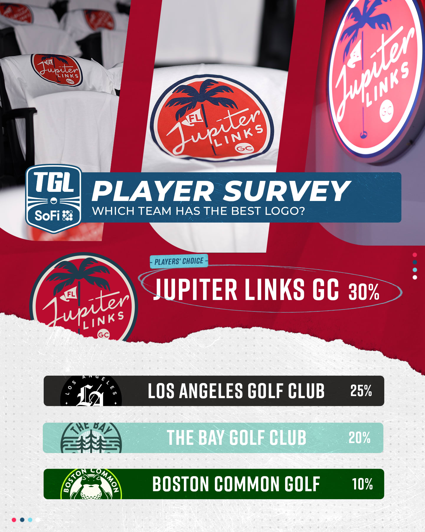 JLGC took the top spot in both surveys for best logo, with a red-washed palm tree in place of a flagstick and Jupiter spelled out in classic cursive. Plus, it doesn’t hurt that Tiger Woods and son Charlie were seen rocking the logo around town throughout the season.