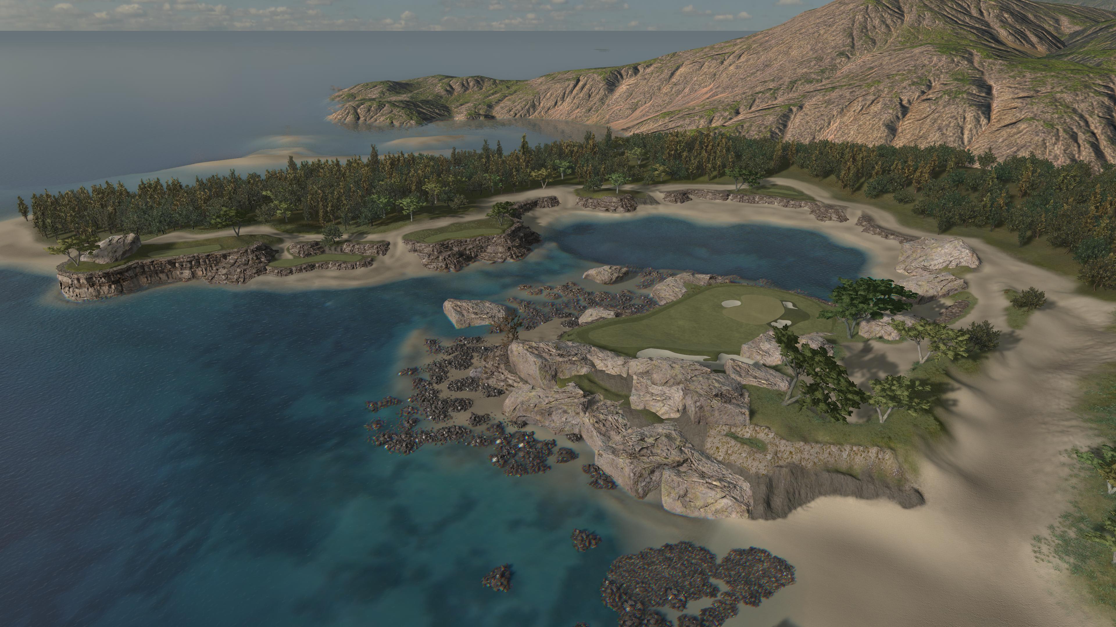 "The idea behind the design was players will have a hard wind blowing off their right shoulder in the virtual setting, which means they have to be careful controlling their shot into the green.