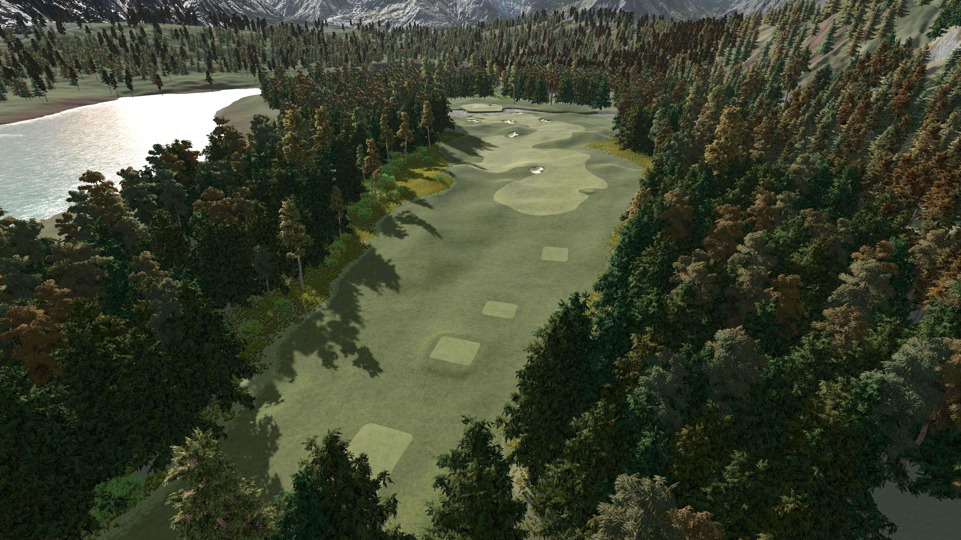 A high trajectory right-to-left tee shot will reward teams with Position A on this reachable Par 5, while bunkers dot the approach to the green, which sits beyond a small ravine.