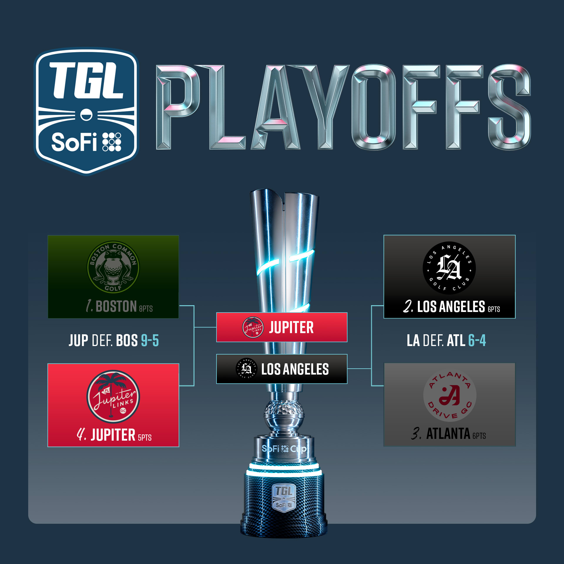 And then there were two. It is Jupiter Links Golf Club against Los Angeles Golf Club in the best-of-three Finals, starting Monday.